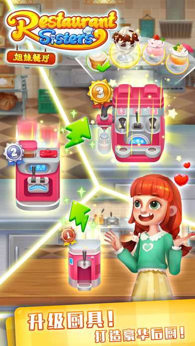 破产姐妹在好心人的帮助下拥有了一家汉堡餐厅,快来帮助她们吧,千万别再搞破产啰! 餐厅,厨房,身临其境!欢迎你,我们的大老板,这是完完全全属于你的餐厅。 你将有机会亲手制作最流行热门的美食,建造全世界最豪华最强大的专属厨房。 你可以亲手为客人上菜、买单,更有机会邂逅总理大臣与当红巨星。 想要建立一个久盛不衰的伟大餐饮品牌吗?带上你的朋友,一起来玩《姐妹餐厅》 特点: *烹饪各式各样美味菜肴 *通过多种途径获得食材 *给个性十足的客人上菜 *解锁升级各种类型的厨具 *收集和兑换多种装饰风格 *送餐到各个地方,完成货运订单 *不拼手速,彻底解放手指; *不用担心食物烤糊或者腐烂(勤俭节约,绝不浪费一粒粮食)。