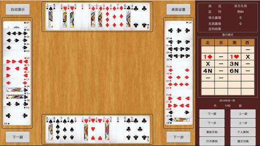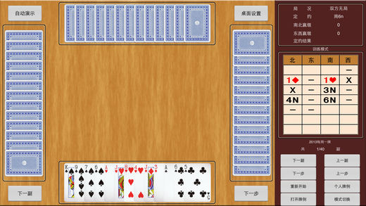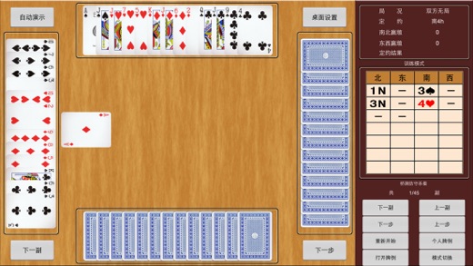 桥牌训练馆 新增人机模式:即可利用经典牌例练习做庄技术,又给你增加一定的乐趣。在人机模式下,你打庄家和明手的牌,iPhone/iPad为防守方。 主要功能: 人机模式,自动演示,手动发牌,牌例保存。 桥牌训练馆汇集1000多副经典牌例,包括安全打法、消去打法、封锁与解封、防守杀着、额外机会、跟牌与信号、对式比赛取胜技术以及桥牌高级战术挤牌等多个做庄与防守专题。在名家精彩牌例中除包括各国著名大师的实战牌例、比赛背景及实战解说外,还包括意大利蓝队的兴衰、沉浮。 对于桥牌初学者和有一定基础的爱好者,它是一个随身的桥牌桌,使你随时随地可以学习桥牌技术、训练桥牌技能和欣赏大师作品,提高自己的桥牌技术。 如果你细心的演示每一副牌例,并且认真地思考,你一定会有惊人的进步。真诚希望你成为一个桥牌高手。 特点: 拥有一千多副经典牌例,所有牌例都有过程分析,界面直观、清晰。 本地加载牌例文件无需上线。 四种模式:演示、训练、自战、人机。 人机模式:你打庄家和明手的牌,iPhone/iPad为防守方。点击要出的牌(再点击其他牌可换牌),然后点击OK按钮,完成庄家或明手出牌。 演示模式:单步演示打牌过程; 自动演示:在演示模式下,可进行自动演示,随时点触任何有效键即可结束自动演示。 训练模式:单步演示打牌过程,有牌例信息提示。 自战模式:通过点触桌面牌张,可对打牌过程进行复习和训练。 (如打错牌,点触已经打出的牌,可将该牌退回原处。) 手动发牌:在自战模式下,输入定约信息后可手动发牌, 进行桥牌打谱训练。 牌例保存:在自战模式下, 可以保存自己输入的牌例和打牌过程。自己发牌,打牌完成后,即可保存。再使用“个人牌例”键即可打开和演示。无论你在网上、某比赛中,还是在杂志、报纸上,打出或看到了值得回味的牌例,你都可以输入到你的iPhone或iPad上,长期保存,随时欣赏。 桌面设置:可设置桌面背景。 一瓶陈年的老酒, 一盒极品的雪茄, 一壶浓香的咖啡, 桥牌,可以用一辈子去品尝!