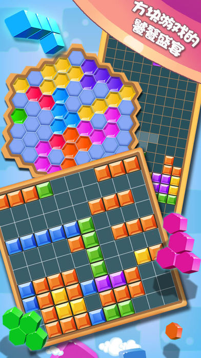 经典游戏无论在何时何地,它的地位一定是无可撼动的。如何让玩家不觉得腻味,那就必须得试试这款咯~ 方块游戏界的泰斗,消除世界里的大咖,你一定久闻他的大名,也一定唤醒了众多玩家的童年记忆,引发了许多共鸣…… 游戏现已涵盖多种模式: ·下落模式:经典玩法,使用宫格旁的键控制方块的下落,同时消除的行数越多,得分越高; ·拖动模式:将屏幕下方的三个备选方块拖入宫格中,一行或一列铺满即可消除,直至备选方块无法放置,则消除游戏结束; ·坠落模式:变异玩法,块块传奇升级版,使用宫格旁的键改变坠落方块的颜色,3个以上相同颜色的方块叠在一起即可消除,累计26行时消除游戏结束; ·消除模式:消除游戏的关卡挑战玩法,点击3个及以上相同颜色叠在一起的方块即可消除,达到目标分后跳转下一关,一起在方块世界里打造块块传奇吧; ·六边形消除:玩法较之经典数独游戏更自由,横、左斜、右斜都可消除得分,同样是备选方块无法放置时消除游戏结束; ·障碍消除:过关玩法,在剩余方块数用完之前消除所有捆绑的方块即可过关,使用1010方块宫格旁边的四个键控制俄罗斯方块的下落,四个相同颜色的方块叠在一起即可消除。 欢迎大家踊跃发出自己的分数来展示自己手指的灵活度哟~