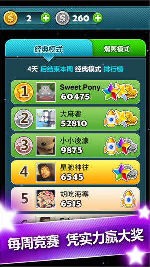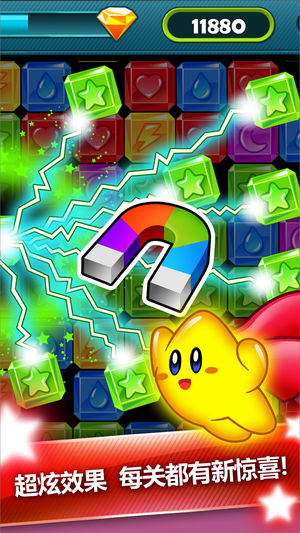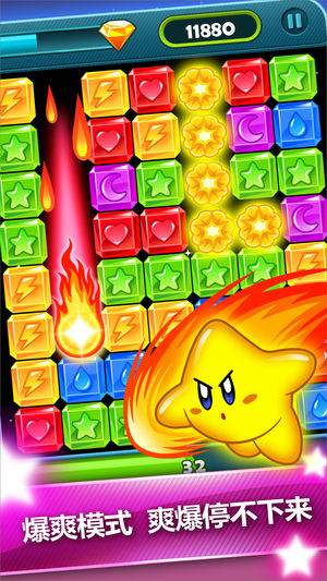 消灭星星2017版——中国人最爱的消除游戏之一! ▶保持经典核心玩法,重新设计界面,给你梦幻甜美的全新风格、丰富有趣的音效、畅快淋漓的手感,带给玩家最高品质的消灭星星体验; ▶新增连消爆爽玩法,令人上瘾的超快体验!60 秒內你能引爆多少颗星星呢?数百关卡+炫酷道具,每局都让你感受如闪电般无比刺激的游戏体验! * 两种游戏模式,宜动宜静 * ▶如果您属于深思熟虑型,或者有充裕游戏时间,那么经典消灭星星模式最适合你了。无时间和步数限制,只需您凝结智慧,步步为营,就可以不断过关,突破自己的极限!各种星块的消除时机的布局堪称微策略游戏的精华! ▶如果你想短时间内放松下大脑,感受指尖点点点,方块爆爆…