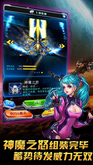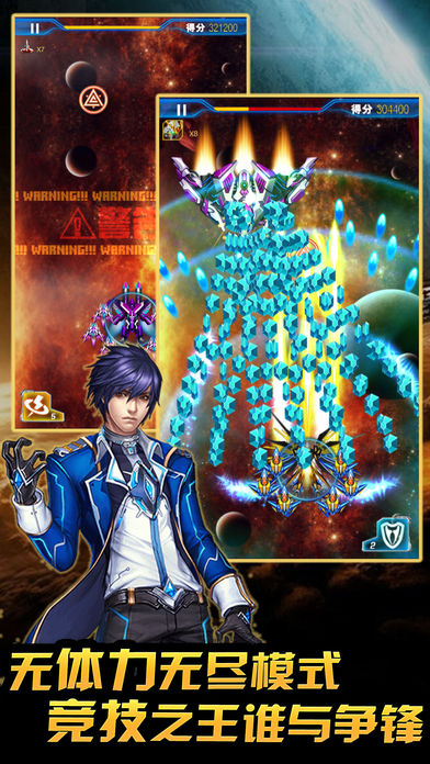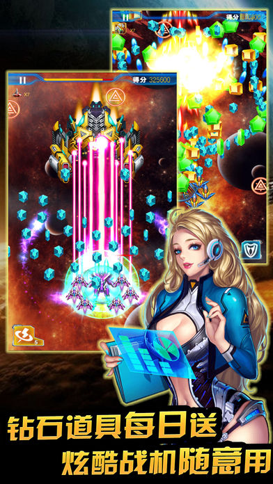 2016最新最好玩的星际题材的飞行射击游戏!!完美手感易操作,高清HD画面,极致流畅体验!上千华丽弹幕!丰富内容超乎想象!开启机甲战神,和宇宙诸神上演巅峰战争,我们必将胜利! 【游戏特色】 1.高清画面特效 2.华丽弹幕极致震撼 3.特色的飞机养成改造系统 4.大量不同的飞机供玩家选择