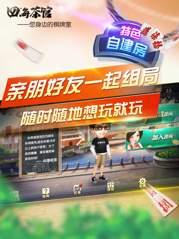 = = = = = = = = = 四 海 茶 馆 = = = = = = = = = 贵州:各区县棋牌玩法的游戏上线了! 四川:泸州-宜宾-乐山-眉山 各区县棋牌玩法的游戏上线了! 云南:各区县棋牌玩法的游戏上线了! 河北沧州:部分区域棋牌玩法的游戏上线了! 山东德州:部分区域棋牌玩法的游戏上线了! “泸州义四海网络科技有限公司” 自研的棋牌手游,原汁原味的区域玩法体验! 根据四川各大区县的玩法使得玩家更能接受线上棋牌娱乐的方式! = = = = = = = = = 游 戏 特 色 = = = = = = = = = 画面精致:清新的画面风格,流利的出牌节奏,超炫的动画效果。 友好体验:增加了许多友好的体验效果,使得更深入当地人的喜爱。 游戏玩法:深入民心的各区县的四川玩法。 = = = = = = = = = 游 戏 种类 = = = = = = = = = 四海大贰:四川人才会玩的字牌,超级刺激好玩! 四海麻将:四川各种特色玩法,巴适惨了! 四海贰柒拾:乐山、眉山人才会娱乐的字牌!