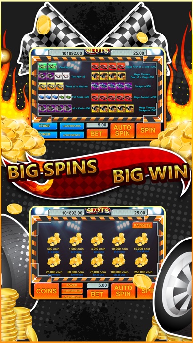 *** FOR PRO VERSION NO ADS & COINS START WITH 4000 ( Buy in app value $4.99 USD ) *** Hot Wheels Vegas Slots Machine is packed with stunning retina graphics and animation, FREE starter coins, interactive gaming vocals, sound effects, poker room, daily bonus, notifications, and more! in HOT WHEELS THEMES This is your chance to win the Super Mega Jackpot with a payout of up to 1,000,000 coins in the 1st ever Hot Wheels Slots game! You're about to enter a world of slot madness with a unique Hot Wheels experience and hours of fun. • FREE starter coins • Daily Bonus up to 5,000 FREE coins • Slots Auto Spin 5, 10, 25 or 50 • Bet 5, 10, 25, 50, 100, 500 or 1,000 • Double or Nothing Poker Room • Enhanced with stunning Retina Graphics • Visually entertaining with lights & liquid animated border Integrated with Game Center, your coins are automatically saved to the High Roller Leaderboard. It's time for you to beat your friends with the highest number of coins. Max your bet and get that jackpot! Get anything higher than 1 Pair and you automatically go to the Bonus Round while also winning Achievements throughout your gameplay. POKER ROOM: Double or Nothing 5-Card Poker Room with Auto Dealer & All In bet options. Raise your bet or go All In to double your money! Beat the dealers hand and win that Poker Jackpot! BONUS ROUNDS: Choose the correct buttons without getting 3 X's and you could win up to several thousand in coins. Coin values can also be multiplied for even higher payouts. It's pure Vegas fun! * For an intense game playing experience, plug your speakers or headphones into your device to get wild grinding and bass-thumping action. SLOTS PAYOUTS: 1 Pair = x2 2 Pair = x5 3 of a Kind = x6 Full House = x25 4 of a Kind = x150 Mega 4 of a Kind = x200 Super Mega 4 of a Kind = x250 Jackpot = x500 Mega Jackpot = x750 Super Mega Jackpot = x1000 Get that Super Mega Jackpot and win up to 1,000,000 coins! DOWNLOAD NOW!!!