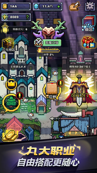到达100层之后可以开启次元穿越,穿越后获取的灵石可以无尽地强化你的骑士们!