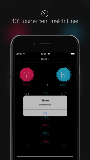 The calculator with timer for your Yu-Gi-Oh! Trading Card Game duels! FEATURES + Calculator designed specifically for Yu-Gi-Oh! Trading Card Game duels + Optimized key-pad + 40' Tournament match timer + Scrollable history score log + Dice roll and coin toss + iOS 9.0 Universal App + Soon new upda…