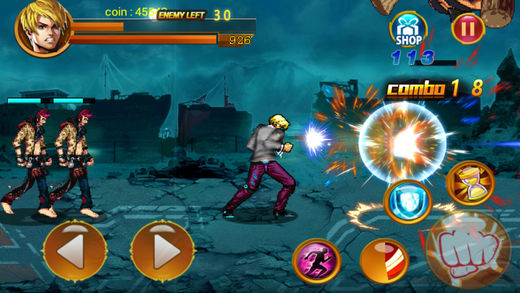 游戏完全免费!!!无内购!!!热血格斗,一爽到底!!! 热血横版格斗游戏的巅峰之作,炫丽技巧无限连发。暴爽的打击感觉 ,精致的游戏画面,跌宕起伏的剧情,让玩家畅爽高品质的动作游戏。更有美女 伴侣陪你一起战斗,让你深陷其中,流连忘返! 《街霸战拳皇》是一款还原并传承街机游戏“街头霸王”的手机游戏格斗巨作,游戏中完美继承了街机中那些让我们蠢蠢欲动的暴力美学,将格斗演绎到极致才是游戏的真正核心所在。您将选择自己喜欢的格斗家,踏上他们的街头霸王之路,重温原味剧情。更有试练等任务等激情再现。忠于原著又绝对平衡的存在,让每个格斗家都是成为街头霸王的绝对助力。技能突破,段位升级,格斗家突破,竞技榜,在线匹配赛,挑战塔,黄金之路,血战到底……诸多玩法,等你来战,和你的格斗家共同成长,成就街头霸王之路!