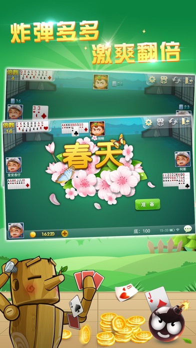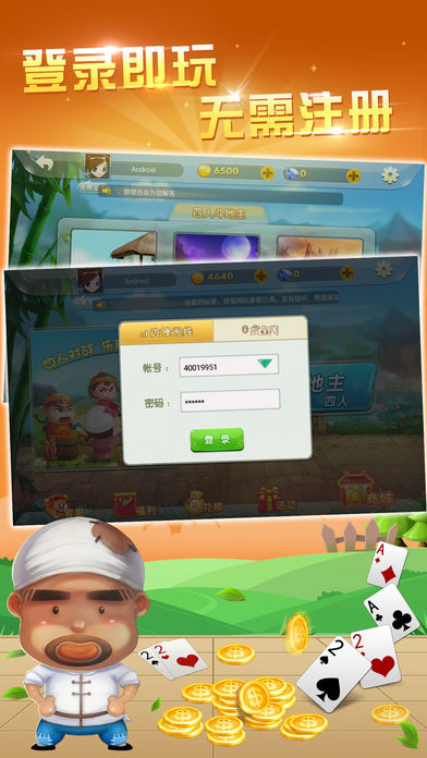 游戏简介: 四人斗地主由三人斗地主发展演变而来,最初流行于浙江、江苏、上海,目前已发展为全国地区很流行的扑克牌游戏。每局两副牌,有一个玩家是地主,独自对抗另三个组成农民团队的玩家。地主的目标是先出完手里所有的牌,而农民的目标则是在地主出完牌以前,农民中的任何一人先出完手里所有的牌。 游戏特色: 1、日常补贴超给力 每日签到,金币送不停,还有更多免费金币等你拿 2、翻倍玩法更刺激 炸弹多多,翻倍不停,分秒之间,万贯缠腰 3、魅力赠送趣无限 礼物赠送,游戏内魅力大比拼 4、一键登录随心玩 游戏随心畅玩,无需注册,登录即玩