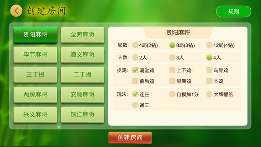地道贵州麻将,真实3D麻将! 实时语聊,让你边打边聊;免输房间号,直接进房间; 【地道贵州麻将】 1、实时语聊:只需打开麦克风,随时想说就说,一边打,一边聊,不要太真实。 2、免输房间号:打开好友邀请,轻轻一点自动进房间,再也不用急急忙忙输入房间号,解放你的双手,让你大肆畅赢。 3、消息弹窗:朋友掉线怎么办,不用几个聊天软件来回切换,直接显示聊天消息。“小明,快点回来打麻将啦!” 4、随机组局:夭寿啦,朋友没空怎么办,随机组局无障碍,想搓就搓更欢乐,麻将桌上论英雄,让你胡到底。 5、正宗精准:贵州麻将规则多,外来和尚怎么知道里面门道,数个贵州家庭计分和规则取样,记分更精准,玩法更多更地道!你就是贵州的“雀神”。 6、专业流畅:最专业游戏制作团队,体验更流畅更稳定,三天三夜不卡不掉,爽! 7、公平安全:绝无外挂,24小时多人后台实时监测,严防各种作弊行为,更公平和更安全的游戏环境,让你赢遍天下无敌手! 8、亲友互动:社交熟人间的约局利器,随时随地大肆“捉鸡”,你们的专属手机麻将馆,即使亲朋好友不在身边也可以分分钟“搓起来”拉近距离更欢快。