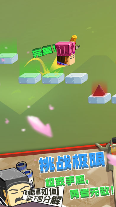 【游戏介绍】 分享游戏,经典力作,挑战收集,等你来玩! 《方块三国志》是分享时代独立研发的一款节奏感十足的挑战类游戏,磅礴史诗的背景音乐!独创的方块美术风格,简直萌翻了!与三国英雄刘备、吕布、貂蝉等角色一起征战沙场,常规模式看看谁最先通关,无尽模式比比谁走更远,无数英雄,看看谁能一统天下! 【游戏特色】 首款创新美术与挑战游戏结合的节奏类游戏。 方块简约美术风格,精美,简单,一眼就方。 紧张带感的游戏关卡,刺激无比的操作体验。 英雄、美人;千兵万马等你收集!