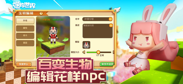 【游戏介绍】 《迷你世界》是一款高自由的精美3D沙盒游戏。 这里没有规则限制,也没有特定的玩法,只有破坏和创造、生存与冒险的乐趣。 可以通过双手和智慧完成一座城市或你理想的建筑,也可以化勇气为力量挑战荒野生存。 可以体验躺在一望无际的草原感受天空与卷云舒的那份自在,也可以感受小动物围在身边的轻松惬意。 当然你也可以做一位邪恶的破坏者、熊孩子,徒手破坏森林、草木,甚至可以建造火山与洪水来改变世界!最后可以把你构建的世界分享给小伙伴,邀请伙伴一起冒险,一起欢乐,一起创造属于你的世界! 【游戏特色】 画面精致,风格独特; 自由创造,玩法丰富; 一键开房联机 随时随地开黑互动; 一键轻松分享 海量内…