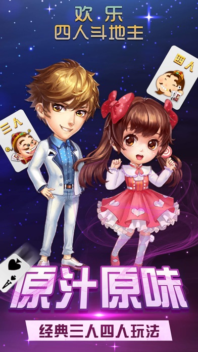欢乐四人斗地主持续开发四年,精心打造出中国最好玩的两副牌斗地主。已取得安装破两亿次,日活跃用户数百万的好成绩!率先集成了经典的四人、三人、比赛、炸金花、百人牛牛、德州扑克、街机电玩等多种游戏,成为2016年超级火爆的棋牌类扑克游戏! 【游戏五大特色】 1、 MM真人视频直播,你敢来,我就敢秀! 2、 界面简单精美,还有超炫特效,俏皮表情,真的值得拥有! 3、 免费畅玩,登录送、游戏送、任务送、绑定送、、、不花钱也照样玩,告别花钱玩游戏年代! 4、 私密开房,亲朋好友一起玩,还能直播聊天与互动! 5、 一键登录,无需注册,超省流量! =================================== 【联系我们】 官方QQ群号:250826587 官方客服电话:021-61300990