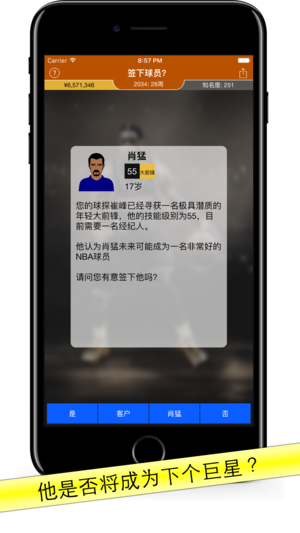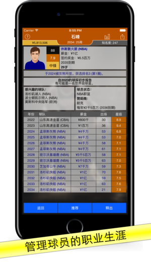 把钱秀出来!在这个创新风格的蓝球运动管理游戏中,您是一位极具企图心的经纪人。您是否能与各个经纪人进行磋商并为球员们取得最有利的合约?您是否有把握面对一群充满自信的年轻球员并塑造他们的事业?您是否能让他们被甄选并加入NBA参赛?如果您自认能在乱象丛生的现代运动世界中牟利,那就放下您所谓的道德伦理,然后迈开步伐吧! 游戏特色: • 找寻前途有望的年轻球员并将他们签到您的经纪公司旗下。 • 逐步透过各个联赛晋级,如日本、中国的NBL及CBA,欧洲篮球联赛,NBA发展联盟及最终的美国男篮职业联赛NBA! • 通过NBA选秀寻获您的顾客 - 您是否能寻获头等球员? • 将球员们推荐给其他球队,但不可…
