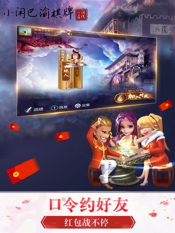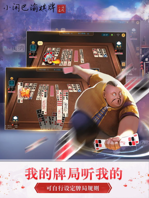 由重庆小闲在线科技有限公司打造的具有本地特色的棋牌游戏平台。包含了幺地人等时下最流行的棋牌游戏,人气火爆、免费下载,真人微信约局,等你来参与! 画面精细:超炫动画效果,出牌节奏流程,精美界面深得玩家钟爱。 智能出牌系统:拖动、双击两种出牌方式,更有智能提示,无需费心,助你成为绝世高手! 口令对战:将口令分享给好友,输入口令即可加入游戏,最真实的麻将馆体验! 游戏玩法:玩家根据不同喜好随意配置游戏玩法,玩自己风格的游戏!