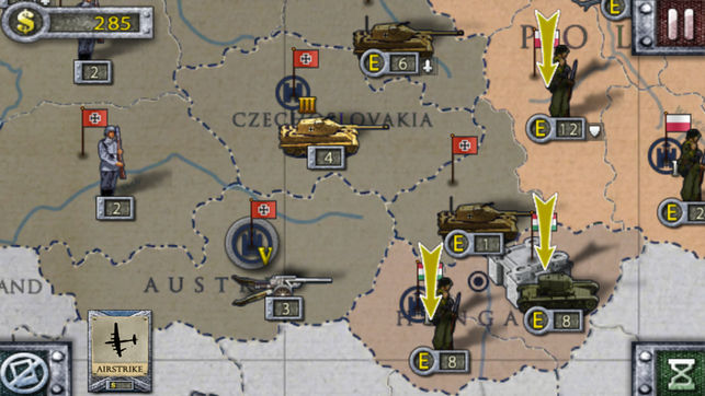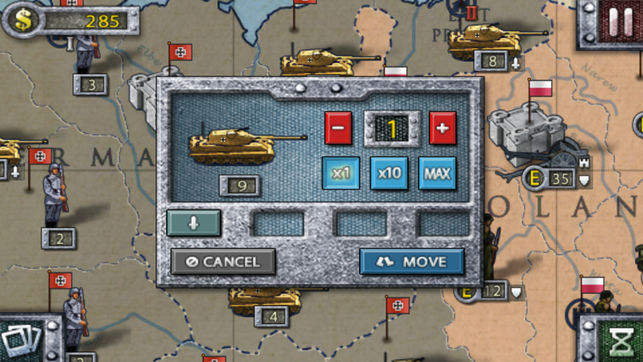 欧陆战争2是以二战为背景的新型策略游戏(Super Risk)。在游戏中依靠军事单位争夺陆地,城市,海洋等地区。争夺资源,发展经济和军事,攻占对方的首都消灭对手。在游戏中共有28个欧洲国家包括200多个陆地地区和海域,可以选择12个轴心国和同盟国进行游戏并享受多种游戏模式。 在游戏中合理的操作和分配士兵,坦克,大炮这三个最基本军事单位进行游戏。 (士兵产量高攻击力一般,坦克攻击力高且完胜对手后可以继续行动,大炮攻击士兵和坦克时候对方不能还击), 随时对当前形式作出正确的判断,因为AI很出色。每个国家的兵种的属性都是有差异的。比如德国的坦克最强但是价格也比较高,苏联的士兵最便宜,英国的海军最…
