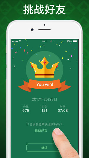 我们带来了经典纸牌中你最喜爱的一切。下次你在飞机上或火车上,排队或等待预约时,如果无聊得快要发疯了 – 那就用 纸牌接龙 来打发时间吧。 上午玩一玩 纸牌接龙 来提神醒脑,晚上睡觉前玩一玩来理清思绪。 你一定会爱上这款 纸牌接龙 ! · 每天都有一个特别的每日挑战在等待着您! 完成挑战,赢得金皇冠,每月获得一个独特的奖杯 · 无论您是想放松还是磨砺大脑,我们都为您提供数千种各不相同的牌局。在必胜发牌模式下玩 100% 必胜的牌局,或尝试随机发牌模式来挑战自己 · 喜欢这场牌局吗?让你的朋友也来玩吧!通过消息应用程序、电子邮件或社交网络来向朋友挑战 · 如果你陷入僵局 – 提示、撤销和洗牌都能…