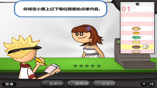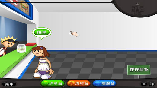 你梦寐以求想当一个汉堡店主,终于有一天,爸爸资助你开起了一家汉堡店,为了不辜负爸爸的期望,你开始了努力学习制作汉堡的技术。注意客户们的各种需求,制作出符合他们要求的汉堡,这样就能有不错的收入来提升汉堡店的装备啦。顾客多的时候,要用便笺把他们的要求记录下来,汉堡制作完成之后再把便笺贴上去,这样就不容易弄乱。加油啊,努力把汉堡店开的越来越专业!
