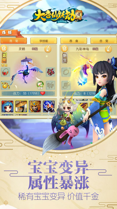 2017年初大作,3D策略回合手游《大唐仙妖劫》新版本“比翼双飞”浪漫上线!全新结婚系统,华丽翅膀、酷炫飞行坐骑,超多萌宠,更多阵容搭配和新玩法,给你不一样的全新体验! 结婚系统,全新上线 让爱在一起!全新结婚系统,夫妻连理养成、专属称号和梦幻婚宴,在游戏里找到心有所属的另一半,从此游戏不再孤单! 仙羽来袭,华丽幻化 18级即可获得仙羽,不同外形、不同色彩,再加上特有的幻化功能,让你在江湖世界独树一帜,个性鲜明! 多人在线,玩的就是交互 组队抓鬼,五人副本,千人帮派战,全民跨服竞技,超丰富多人玩法问道王者,实时语音社交,聊天把妹,拒绝单机! 完善经济体系,自给自足 捉鬼,挖宝图,开宝箱,八卦炉、任务链打传说、伏魔诛仙,全自由交易,自己赚钱,多重收益!当猎人抓宝宝,洗练变异属性,富甲一方,创造神话奇迹! 丰富剧情,超多玩法 凄美支线故事,激爽多人副本,帮派战,擂台比武,科举中第,帮派荣耀、海外贸易,打坐骑,几十种玩法每天有新意,拒绝无脑,拒绝重复,拒绝无聊! 联系我们: QQ公众号:800188130 联系电话:020-35915999 客服邮箱:ewkf@ewan.cn
