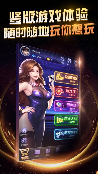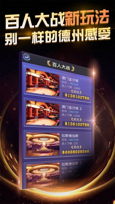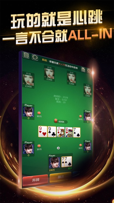 国民最喜爱的德州扑克游戏平台! 2017年全新升级,更好玩更刺激! 免费赠送海量金币,疯狂大奖赛,豪礼等你来拿! 产品介绍: 德州扑克是全世界最流行、最好玩、最刺激的扑克游戏。 游戏特色: 1、5-9人桌普通场,随时随地开始较量! 2、9人SNG淘汰赛,真材实料雄霸一桌! 3、1对1 Heads Up决斗赛! 4、豪华的视觉体验,真实的拉斯维加斯感受!