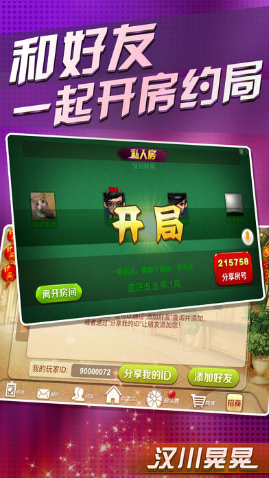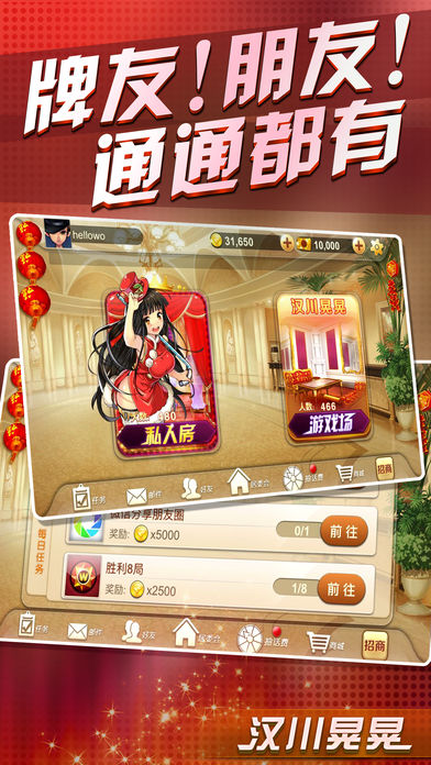 汉川晃晃,专为汉川人定制的手机麻将游戏。采用汉川当地流行玩法(赖晃)为基础规则,同时也提供(硬晃)游戏规则的游戏,游戏中带有自建房功能。