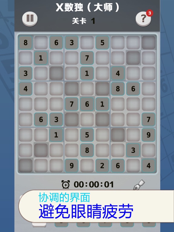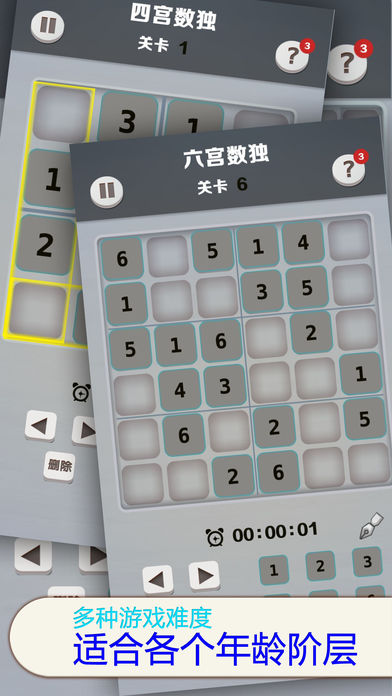 一款拥有几十年历史的数字益智游戏,5种宫格,3种难度,适合各种水平,最接地气的数独游戏。 玩好数独游戏首先要了解它的特点、要求,然后要运用一些原则和技巧,福利送上: 1.利用排除法先填可以确定数字的行或列 2.优先填空格最少的行或列 3.当应用以上两个原则填好可以确定的和空格最少的行和列之后,其他行或列又有可以确定的数字,循环运用前两个原则填写空格。 运用此技巧基本上就是逐个填确定的数字,不需要去尝试可能性。答案只有一种,关键是找出突破口,在此祝大家好运吧。 操作提示: 1.选择一种游戏模式,只能从简单开始并且逐级解开关卡哦! 2.进入游戏,选择一个没有数字的空格,计算该位置可以填入的数字... 3.得到计算结果的数字后,点击下排的该数字按钮,填入数字。 4.你还可以使用备注功能,提示按钮等帮助解题和提高解题速度... 5.前进和后退功能,能够让你返回之前的步骤