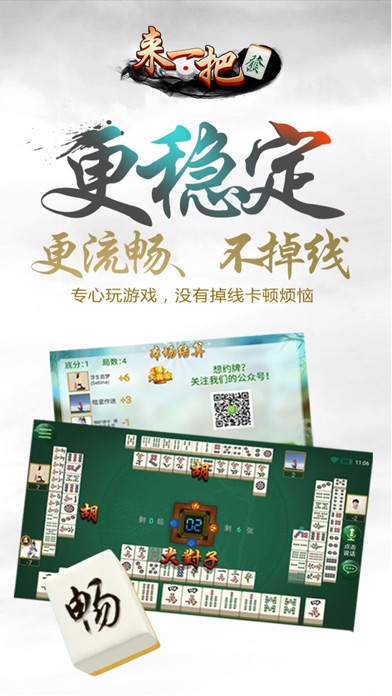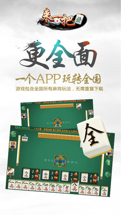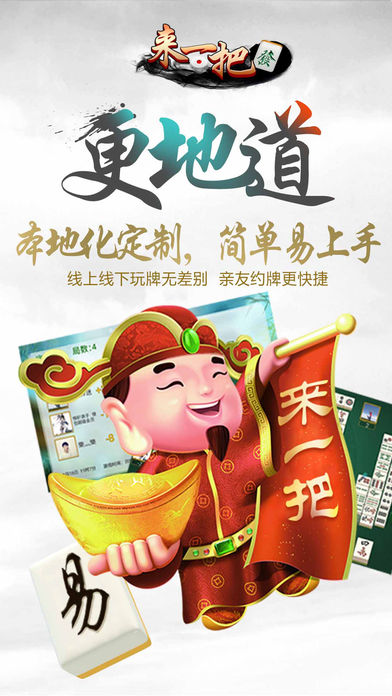 来一把麻将——手机上的麻将馆 产品介绍: 来一把是一款手机上的麻将游戏,全民手机时代,你可以在手机上随时随地和亲朋好友搓麻将,是传统麻将馆的有力补充。 游戏特色: 超强防作弊麻将,杜绝外挂存在 录像回放、GPS测距、同IP报警、禁模拟器,严防作弊! 更稳定、更流畅、不掉线 多种互动道具,特色游戏语音 智能提示、界面大方更具人性化