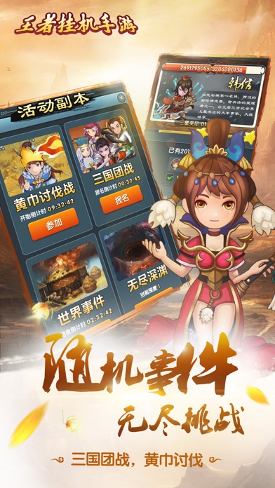 争霸三国!!! ===回味经典 野地爆装=== 经典的玩法“PK爆装备”。自由切换战斗模式,自由PK,单挑还是团战,完全自由! ===画面清晰 操作流畅=== 高精技术打造,最清晰的画面和最流畅的战斗体验。即使千人同屏仍然进退自如!华丽装备、炫酷技能,随你秀! ===自由交易 白手起家=== 完全开放的自由交易系统,不花钱的玩家同样可以通过自己的努力在游戏中活动元宝,没有交易的手续费,不需要做额外的消耗,买卖随心! ===千人同屏 再聚辉煌=== 自由切换战斗模式,单挑团战随心所欲!参加千人团战,体验经典的乐趣,再创兄弟们的辉煌!