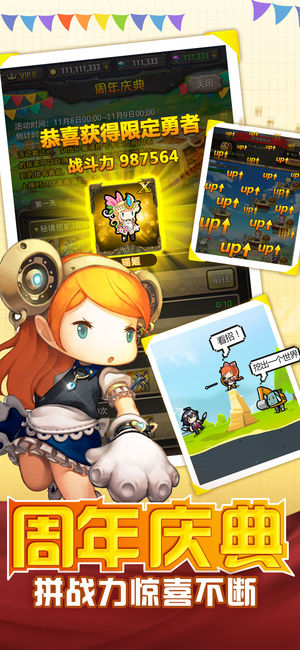 勇者大作战一周年了!无限勇者魔性手游《勇者大作战》周年庆典火热开启,颠覆你的世界观只需0.1秒。多元玩法组团开战,躺着也能嗖嗖升战力!更有让人欲罢不能的弹幕吐槽,魔性新春,旺旺旺! 组合上阵战力飙升,勇者最强羁绊开启! 更多“X”暗金勇者来袭,助阵玩家达到战力巅峰! 结婚系统,让你从吃狗粮变成发狗粮,秀恩爱的时候到了! 帝国荣耀全服PK赛,给你一个成为全服焦点的机会。 宝具,勇者装备新玩法,玩出属于你的个性。 放置挂机玩法,离线也能持续获得收益,升级so easy! 更有让人欲罢不能的弹幕吐槽,魔性2018! 史上最魔性的手游,你真的不来一发吗? 制作人表示:诚挚的希望不管大家有什么意见或是…