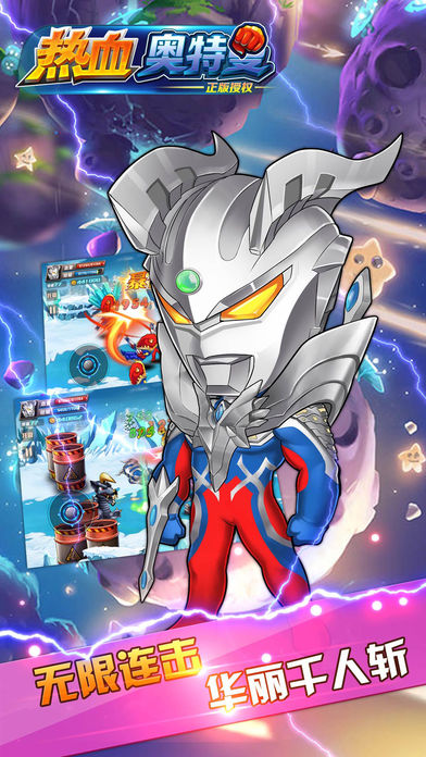 官方正版授权奥特版横版格斗游戏,让你回味经典奥特曼剧情,重新寻回失去已久的童年。 2017年超爽快超带感的的格斗游戏,用你超酷的动作撕碎外星怪兽,成为保卫地球的新一代勇士; 极限挑战,嚣张的巨大BOSS关卡,引爆全球的格斗热潮,让不能错过的你一次战个爽,让你秀出你人生的风采,妹子滚滚来。 [游戏特色] 真正的动作游戏,让你无限连击,人人都可以轻松成为一个操作帝,让你随心随意连; 超炫的技能,让你随时肢解你眼前的怪兽; 高清的画质体验,华丽的视觉盛宴; 4大奥特曼经典形象,重现儿时的英雄; 高度自由的技能组合,打造属于你的超厉害操作; 萌萌哒的怪兽期待与你来战。
