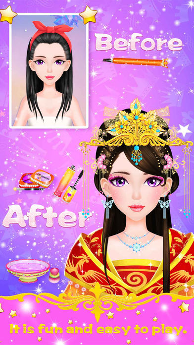 欢迎来到中国传统服饰女孩的水疗美妆和换装沙龙! 从一个美妙的水疗护理开始,确保她的头发和皮肤干净。 接下来,帮她做化妆,最后选择完美的发型和传统中国服饰与精美的首饰! 完成这个梦想中国公主秀! ** 特征 ** 水疗部分: 浸泡一个舒适的泡泡浴,挤压痤疮,清洁眉毛 化妆部分: 尝试几十种不同的口红,眼睛,眼影,和彩绘。 头发部分: 不同的发型可供选择 装扮部分: 最好的一天,各种各样的配件,包括耳环,项链和头饰。