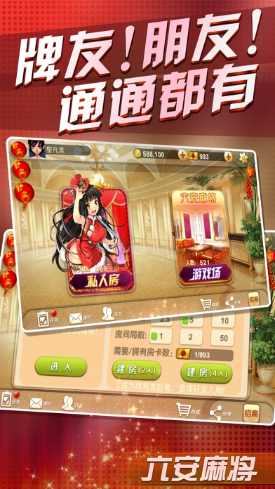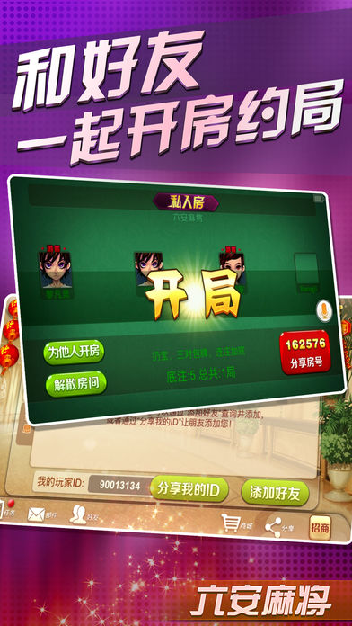 六安麻将,专为六安人定制的手机麻将游戏。采用六安当地流行玩法为规则的游戏,游戏中带有自建房功能。
