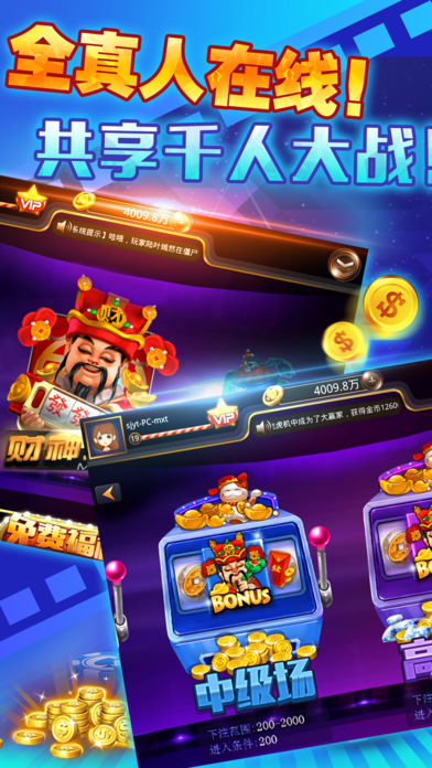 《大赢家电玩城》是一款容纳了许多玩法的休闲类手游,iPhone和ipad玩家可以通过下载《大赢家电玩城》app来体验这款趣味多多的休闲手游!《大赢家电玩城》中除了会有画面绚丽,概率超高的各类Slot游戏以外,还揽括了万人百家乐、多人21点、李逵劈鱼、欢乐牛牛等多种其他游戏。同时,游戏里丰厚的签到奖励,最专业的游戏规则,令你足不出户就可以体验澳门最流行的特色游戏! 游戏特色 ◎ 最豪爽:每日签到奖励,连续登陆翻倍加赠,免费奖励都这么刺激! ◎ 最专业:百分百移植的Slot游戏,最纯正的捕鱼、牛牛、百家乐和21点游戏,体验最经典玩法。 ◎ 最刺激:不仅有刺激的玩法,还有更刺激的活动! ◎ 最真实:全面社交化的老虎机、、牛牛、百家乐和21点游戏,邀请土豪一起玩! ◎ 最贴心:7*24小时客服支持,爲您提供最便捷快速的专业服务! 游戏模式 - 水果老虎机 – 最经典的老虎机,原汁原味复原777最经典的老虎机! - 财神来了 – 财神主题老虎机,开启富甲天下之旅! - 僵尸先生 – 原创经典,最新上线,不容错过! - 万人百家乐 – 比大小,赢大奖! - 多人21点 – 谁是黑杰克之王? - 欢乐牛牛 – 经典玩法,紧张刺激! - 李逵劈鱼 – 超高概率,惊喜不断! 特色玩法 丰富奖励系统,百万筹码送不停 每日签到大奖,在线奖励,任务奖励,升级奖励,超过万种中奖方式。 天天在线送好礼 任务奖励,升级奖励,活动奖励,多种中奖方式,让您不花钱也能尽情感受刺激的游戏! 绚丽特效,超值体验 全新游戏界面,绚丽得游戏特效,刺激地游戏玩法,实时在线客服,尽享每分每秒的巅峰时刻。 玩法刺激,轻松上手 单手触摸操作,轻点即可完成下注,全自动设计,玩家无需操作即可全天24小时玩游戏,畅玩游戏无阻碍。语音交流无需打字,超低流量消耗。