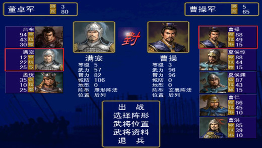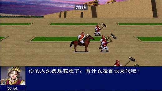 ———良心重制,无内购———— ---------怀旧玩法-------------- 这个游戏与以往的三国游戏相同的是统一全国,不同的是它的时间(应该说是年代)的表示方法是即时的,也就是说它不是回合制的,而时间是以月来计算的。游戏的重点是战争而非内政,玩家可亲临前线,在沙场上杀敌,也可运筹帷幄,享受军事家的乐趣。游戏按即时制展开,双方行动和交战是同时进行的,战斗景观相当刺激。 游戏进行的大致流程是“内政经营模式”到“大地战略模式”,然后到“战争发生”,再循环到“内政经营模式”。许多玩家说,这个游戏最吸引人的莫过于武将升级系统及必杀技了。 ----------战斗模式----------- 游戏采用了只在角色扮演类游戏中才出现的经验值,有了经验值也就有了升级。在游戏中,武将只要在出征队伍中就都会获得经验值,若出战(无论胜败),则会获得更高的经验值,若获胜,经验更加丰厚,但是若敌将逃走,获得的经验要少于敌将落马。只要达到一定的等级,就会自己学会一项新的必杀技或军师技。根据武将武力和智力的差异,不同武将可能拥有2-8项武将技和军师技(在游戏开始时每名武将就已经有了一项必杀技和一项军师技)。游戏的武将技在高彩模式的画面下有着华丽眩目的光影效果。