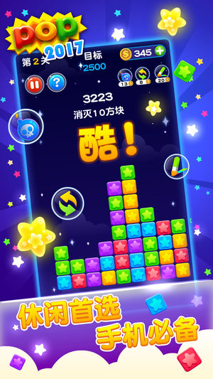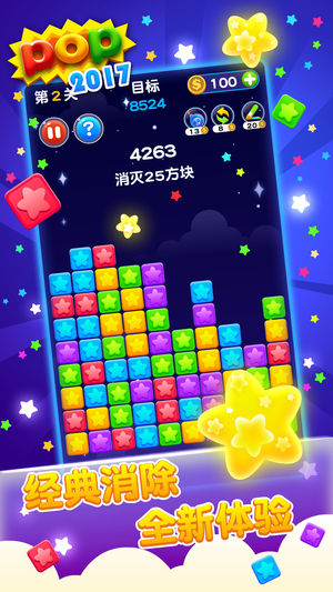 ◆◆◆全球下载量突破 5亿的游戏,你想错过吗?◆◆◆ ◈◈◈2014和2015年最受欢迎休闲游戏,蹲厕必备!◈◈◈ ◈◈上至80岁老大妈,下至2岁乳娃娃,不分男女老幼,无论仙魔人神。但凡世间生灵,都在消星星!◈◈ 每天上百万地球人疯狂点击,消除游戏开山之作!现正式推出2017版,手感更流畅,体验更酷爽! 【规则简单】 点击两个或两个以上颜色相同的星星即可消除,相连星星越多得分越高。 【多种道具】合理使用会让你事半功倍。 【社交分享】分享你的战绩到微信,与好友一较高下。 【全球排名】登陆Game Center查看你的全球排名。 还等什么?赶快拿起手机吧,无数伙伴正在游戏中等着你!