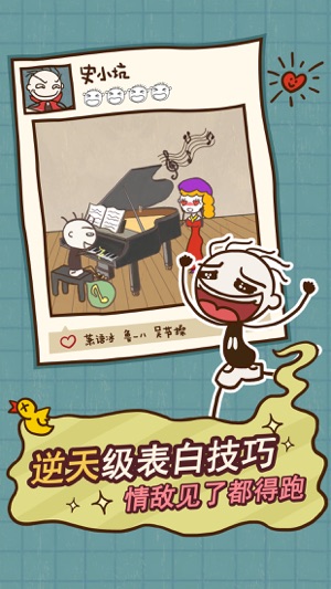 《史上最坑爹的游戏12》追女日记悄悄来袭!单身汪史小坑这次要非常认真地传授大家真正的“泡妞技巧”。只要虚心地向史小坑老司机学习,相信一定可以成功追到女神的……如果不行,那就换一个吧~~~ 上学如何偶遇女神、化身英雄拯救女神、化身钢琴王子弹奏动人乐章……无论是在家里、在学校、在商场还是在野外,都有无数奇葩技巧供你学习。 只要998,只要998,泡妞宝典带回家! 注意!现在加入,还可以免学费!还不赶紧下载《史上最坑爹的游戏12》来学习学习。 【产品特点】 特点一:奇葩技巧,以你意想不到的方式追求女神! 特点二:耐人寻味的玩法,追女奇招花样百出! 特点三:搞笑画风,令人捧腹大笑的场景表达! ===…