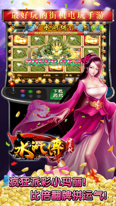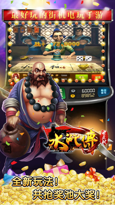 ◆2017年国内首款完美移植老虎机水浒传隆重上线!◆ --■动感界面■绝美画面,炫酷特效,如幻如真的古典配乐 --■极致体验■狂热!火爆!百万玩家共赴梁山!亿万奖池等你来拿! --无需注册,免费下载,立即开玩! 【游戏特色】 1、古代与现代的完美结合,史诗般的街机大战! 2、独特的左右靠边算法,每根线左右靠边都可算分! 3、中3个或3个以上“龙头”,即可进入小玛丽环节,疯狂派彩,根本停不下来! 4、逼真的3D人物,古色古风的动画,超级刺激的比倍游戏,只要敢搏,奖励翻番无上限! 5、完全街机话的数值,拼胆识,拼运气,绝无吃分的可能! 6、独特的银行功能,双重保护,再也不怕账号资金丢失! 7、百万人在线共夺奖池大奖!