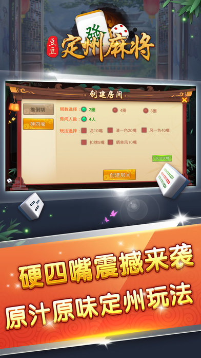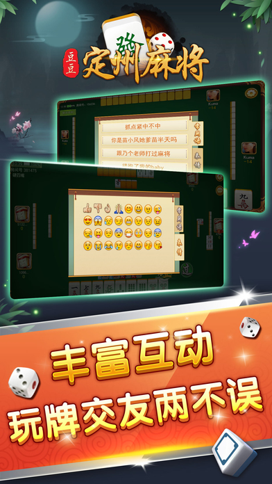 豆豆定州麻将 - 好友玩牌,约局神器!定州最正宗、最流行的麻将玩法,定州人自己的麻将规则!原汁原味的玩法,独特的私密房间帮你约牌,让你和好友开心对局,不被作弊和不安全烦扰! 游戏特色 1.告别单机玩法,烦人广告,最公平最爽快的竞技类棋牌游戏。 2.精美的画面,优美的音乐,流畅的网络,让您享受最极致的游戏体验。 3.最公平最公正的游戏,与百万玩家共同竞技,斗智斗勇,胜者为王。
