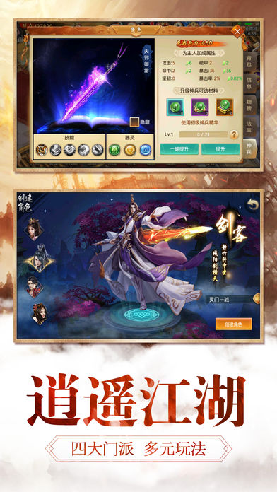 2017国民级武侠MMORPG隆重上线!!! 原班人马打造的3D ARPG动作手游,端游移植,传承经典的国风世界精髓。定制轻功、俯仰大千世界,乘风遨游;爽快连招、绚丽3A特效,打动人心;精心勾画每一个昼夜晴雨,绝美国风、匠心武侠! 采用次世代3D技术呈现细腻唯美的实场景,用飘逸轻功动作演绎浓厚武侠精髓。 本作继承了的十多年的经典内容,保留门派竞技、宋金战场、野外BOSS等经典玩法,百人同屏大战一触即发! 各大门派聚首,这个江湖等你来战! 游戏历史横跨300年,中华古典寓言,传统典故,武林事件均将呈现。将诗词、歌舞、丝绸、古琴、饮酒文化、茶艺、音乐等多种具有中国传统文化特色的元素融入到游戏之中,并制作成让玩家参与互动的生活技能,建立起完整的社会经济体系,让玩家亲自感受中国传统文化的魅力。