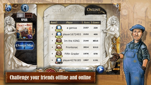 Discover Ticket To Ride, the digital adaptation of the famous Ticket To Ride board game. Don't hang about on the platform – board the train and set off on a railway adventure like no other. Collect wagons to take control of the railways connecting the various cities of the United States of America…