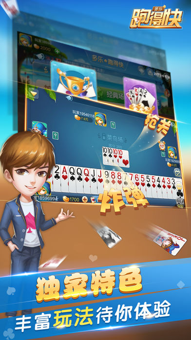 ————全民跑得快 湖南经典跑得快———— 跑得快又称为湖南跑得快、跑的快、单机跑得快,争上游、掼蛋,关牌、锄大地、是最常见易学的类似斗地主玩法。3人对战,16张牌,老少皆宜,有大必出,放走包赔,炸弹现结。下载、无需注册、无需充值, 安装后即可开始手机跑得快。 ————多乐跑得快 独家特色———— ◆无与伦比的跑的快体验 极致精简,纯正湖南跑得快,内存占用少,游戏精致又流畅; 跑的快俏皮表情包,出牌炫特效,超精美画质不打折扣! ◆全民跑得快 跑得快乐趣多 单机场,斗智斗勇,其乐无穷; 联网场,随便对战,欲罢不能; 擂台赛,随机应变,逆转乾坤; 私人场,亲朋同城,悠闲来玩! ◆联网跑得快省流量,单机跑的快也精彩 网络连接优化,手机流量一省再省!还有丰富单机模式,不耗流量,随时随地跑得快。 ◆极致的选牌系统 智能选牌,简单便捷,手机跑得快就是这么简单。 ◆严防作弊,公平竞技 采用最顶尖的防作弊技术,进入游戏自动配桌,输赢全靠水平!尽享湖南跑得快! 多乐跑得快可媲美闲来跑得快、龙宇跑得快、皮皮跑得快、白金岛跑得快、锐游跑得快、有朋跑得快、口袋跑得快、随便跑得快,给您地道湖南跑的快。 ————多乐跑得快玩法说明———— ◆经典16张湖南跑得快玩法,地道湖南家乡玩法,正宗跑的快; ◆15张跑得快,玩法更简单,更刺激; ◆2人跑得快,双人PK,随时开战,看谁跑得快; ◆4人跑得快,包含一副牌,两副牌玩法,玩家首选关牌、争上游玩法 ————多乐跑得快其它特色———— ◆比赛场,各地玩家齐聚一堂,说走就走; ◆好友场,好朋友随时约局,随时开战; ————跑得快联系方式———— 跑得快官方QQ群:302577930 微信公众号:duoleqipai
