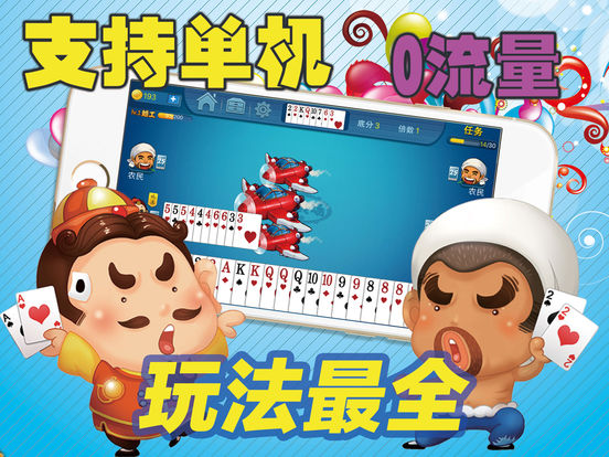单机斗地主:四人斗地主,邀您体验! 免流量单机随意玩,玩法大全:包括一副扑克三人斗地主和两副扑克四人斗地主的全部玩法,不用联网,不要流量,随时随地都能玩! 超强的人工智能,会玩会配合,练习牌技的最好帮手! 不用花钱,随时玩,赢了得金币,输了不会扣分。没有入场费,想玩就玩! 多种道具,祝你挑战更高积分,获得更多金币。早日成为帝王! 人人都爱的斗地主,2017年度最强单机版斗地主,快来下载!