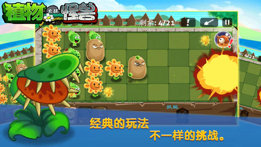 2017最佳植物塔防游戏~ 重温经典,再续塔防游戏巅峰。 《植物大战怪兽》登陆,植物们与僵尸们史诗般的斗争,将在不同的时空维度中进行续写!新的植物,新的僵尸,新的玩法,结合最先进的触摸屏技术,玩家可以打破传统意义上的塔防,直接加入怪物抵抗战。 新的触屏超级道具,新的神奇植物能量,用新的方法保护你的家园,快来加入穿越时空的疯狂冒险!
