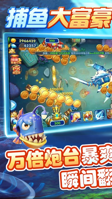 2017最最最好玩的捕鱼游戏!!! 捕鱼大富豪是一款集传统千炮捕鱼、多种游戏厅火爆小游戏于一体的多人联网、实时对战的休闲手游,原味经典街机移植,真实还原游戏厅的捕鱼体验,震撼的视觉效果、劲爽的玩法,超高掉率,自由交易,令捕鱼更畅快、竞争更激烈!