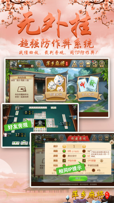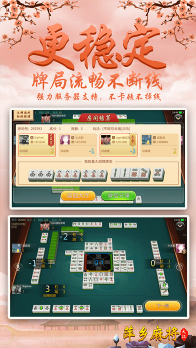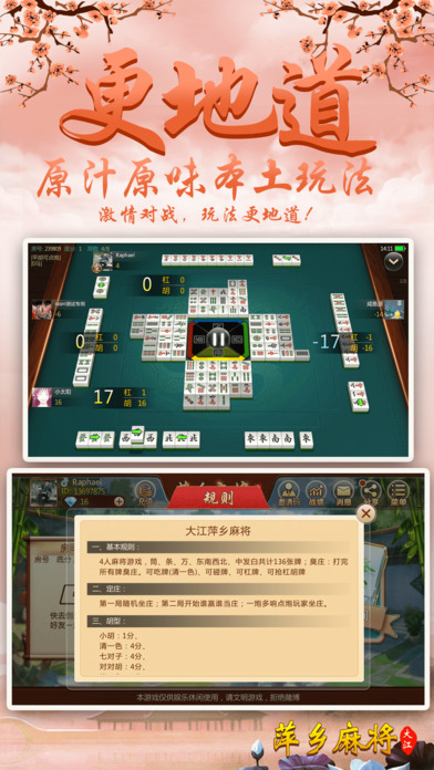 萍乡人都在玩的包房麻将,不玩你就out啦! 【最地道】 最地道的萍乡二五八麻将,使用筒、条、万、中发白,东南西北共计136张牌的4人麻将游戏;可碰,可扛,无赖子,只有胡清一色时能吃牌。要玩就玩萍乡人自己的麻将! 【最好玩】 再也不用苦于配桌,全民手机时代,你可以再手机上随时随地和亲朋好友搓麻将,是传统麻将馆的有力补充。快和亲朋好友一起开房,决一高下吧! 【最稳定】 大厂出品,确保游戏过程更加稳定,专心玩游戏,没有掉线卡顿烦恼。 【最靠谱】 可以录像回放,GPS预警,杜绝外挂,真实可靠。 【最智能】 智能提示、界面大方更具人性化,支持智能单独、分开支付房费。