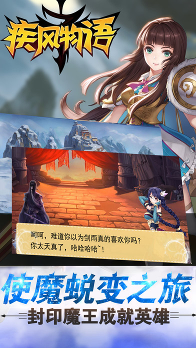 疾风物语——次元穿越冒险对战手游 —跌宕起伏的魔界剧情,征服暗黑之力 唯美融合暗黑打造另类画风,步步惊心开启伏魔之旅,四大军团八大勇士聚集同战,开启天赋、寻找勇士、并肩伏魔、拯救队友等层层剧情尽数展开,惊险剧情触发闯关战斗,将怪物魔王一网打尽! —高还原多地貌战斗场景,身临其境时刻新鲜 根据现实还原世界各地经典景观地貌,Unity3D打造极寒冰川、阴森密林、河流古船、惊险火山 荒芜沙漠等奇境穿越,一草一木、光影细节、障碍设置,全场景开启魔幻主题的沉浸体验,逼真刺激不得不玩。 —超越职业技能搭配 百系兵器策略致胜 摒弃传统职业设定,搭配兵器成就技能,策略魔幻让每个英雄打出攻防控制不同招式,自定义的战斗流派使玩家有自由切换职业之感,攻防控制皆由你决定! —神兽坐骑英姿飒飒 伙伴系统并肩作战 伙伴系统由古龙、使魔、勇士组成,延伸出助战、养成、训练等多阶丰富玩法,使魔变身神勇坐骑、勇士一路助战伏魔、怒气爆发召唤古龙,异界作战与伙伴共寻乐趣! —走位施技协同作战 重拾热血大秀操作 双摇杆操控魔幻激战,多人副本开启队友协作模式,相互掩护与技能配合,策略PK大秀操作!小魔怪、大魔王、机关屏障,军团协作出击誓夺团队荣耀!