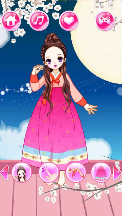 游戏中的三位古代公主分别来自中国,韩国,和日本。 让我们来帮助她们打扮,了解古代的穿衣风格吧! There are three princess from Ancient China,Korea, and Japan. Let's help them dress up and try to understand the ancient style! Pick out the perfect princess dress from hundreds of dress up combinations – clothes, hairstyles, jewelry and much more! Show off your fashion skills and imagination by mixing and matching gowns, crowns accessories and more. Come on! ***Game Feature*** 1. Choose dresses and accessories for your cute model 2. Style your model in the best outfits 3. Hundreds of items are offered for your free combination The saved image can be: - emailed to your friends! - shared on Facebook! - used as wallpaper or avatar!