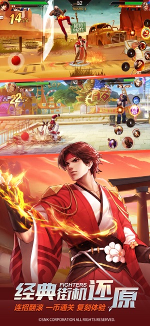 腾讯游戏独家代理,银汉游戏倾力打造的SNK正版授权格斗手游——《拳皇命运》来了!拳魂不灭,热血再燃,不服你就来KO! 100%KOF公平决斗、创新3V3推塔PK,车战、空战、街头战,与人气格斗家并肩! 【拳】劲冲天,格斗必须真 真实物理反馈引擎,拳风透屏而出,精准到单帧的判定设计,炸裂眼球的视觉冲击,打造公平又带劲的格斗竞技! 【皇】者齐聚,出拳必须帅 “拳皇”人气格斗家集结,自建冠军天团,打造个性格斗馆,百变时装随心换,每一次出拳都是最潮的姿态! 【命】中强者,遇敌必须刚 延续“拳皇”格斗王者使命,复刻街机暴爽体验,一币通关、十割连招、好友开房约战、俱乐部百人街斗,谁无年少轻狂…