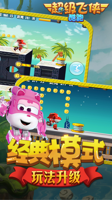 超级飞侠急速出击! 2017首款超级飞侠主题横版跑酷手游《超级飞侠酷跑》隆重登场! 操作超级简单,场景细腻,画面清新精美绝伦,3D场景为您带来更多视觉震撼!想获得海量金币和钻石?那就进入经典模式,与万千玩家比拼分数!想要挑战极限?那就快来进击模式吧,超快节奏让你的手指根本停不下来!快来操纵超级飞侠打败BOSS,成为真正的跑酷达人,赢取丰厚奖励!!!