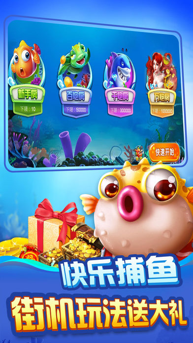 【捕鱼简介1】 渔友陪你捕鱼,万炮齐发嗨翻全场 内容提要: 1、真人在线联网捕鱼,渔友就在身边 2、十炮、百炮、千包、万炮,疯狂开炮 3、奖金鱼、倍率更高,海量金币等你来 4、鱼儿拟人化的音效,不一样的捕鱼体验 游戏特色 1、厌烦了一个人的捕鱼,厌烦了一个人的孤独,捕鱼达人电竞版来了!真实玩家多人在线,渔友就在身边。黄金鱼,抢到就是你的! 2、多种炮台规格,十炮、百炮、千包、万炮,疯狂开炮,万炮齐发。炮台基数越高,捕鱼赢得金币越多,秒变土豪,完美逆袭就是现在! 3、稀有的奖金鱼,超高倍率,打中了就找到了中大奖的刺激,想挣金币就开炮吧! 4、绚丽的画面,搞笑的鱼儿对话,炫酷的技能,击中大鱼就能感受到爆屏的刺激! 【捕鱼简介2】 真人捕鱼,金币掉不停,真正的原味街机游戏厅捕鱼。是捕鱼老司机就大胆秀出来,展现不一样的捕鱼风采。 游戏特色 1、真实玩家多人在线,渔友就在身边。黄金鱼,抢到就是你的! 2、十炮、百炮、千包、万炮,万炮齐发。秒变土豪,完美逆袭就是现在! 3、稀有的奖金鱼,超高倍率,打中了就找到了中大奖的刺激,想挣金币就开炮吧! 4、绚丽的画面,搞笑的鱼儿对话,炫酷的技能,击中大鱼就能感受到爆屏的刺激!