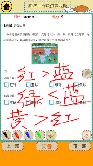 天天奥数栏目每日试题由奥数名师精选、解析,以保证试题质量。 根据试题知识点类型匹配难度,中难度试题适合一些有过思维基础训练、考题学习经历,并且数学成绩中上的学生。高难度试题立足于杯赛真题、综合应用和加深各知识点,适合一些志在竞赛中夺取佳绩的学生。 小学一年级右脑数学精选知识点精选、解析:摸彩球; 小学一年级右脑数学精选知识点精选、解析:求正确结果; 小学一年级右脑数学精选知识点精选、解析:几种走法; 小学一年级右脑数学精选知识点精选、解析:开发右脑; 小学一年级右脑数学精选知识点精选、解析:蜗牛爬井; 小学一年级右脑数学精选知识点精选、解析:巧算加减; 小学一年级右脑数学精…