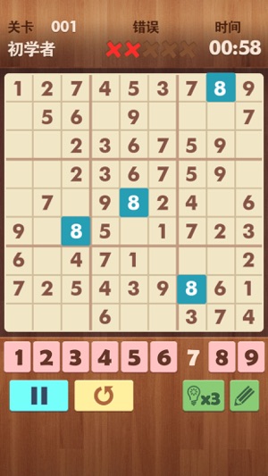 知道数独么?一款拥有几十年历史的数字益智游戏。如果喜爱数独,那么史上最强大的数独终于来了! 玩好数独游戏首先要了解它的特点、要求,然后要运用一些原则和技巧,福利送上: 1.利用排除法先填可以确定数字的行或列 2.优先填空格最少的行或列 3.当应用以上两个原则填好可以确定的和空格最少的行和列之后,其他行或列又有可以确定的数字,循环运用前两个原则填写空格。 还等什么,赶紧来下载吧!让我们开始乐趣无穷的数独人生!
